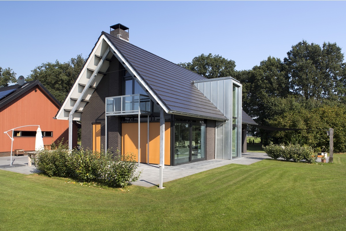 Het woonhuis van hun ouders, Bennie en Willy, is wel op het zuiden gebouwd, maar bevat wat minder glas. De berging met zonnepanelen vormt de verbinding tussen de dwars op elkaar staande woonhuizen. ‘De twee woningen zijn specifiek ontworpen op de individuele wensen van elk van de opdrachtgevers, zonder daarbij het geheel uit het oog te verliezen. Volgens mij vormen ze samen met de berging een passend geheel’, zegt architect Ehrenhard. Beide woningen zijn zeer energiezuinig en voldoen ruimschoots aan de energie-eisen doordat in het ontwerp rekening is gehouden met de positie in de omgeving en zonlichttoetreding.