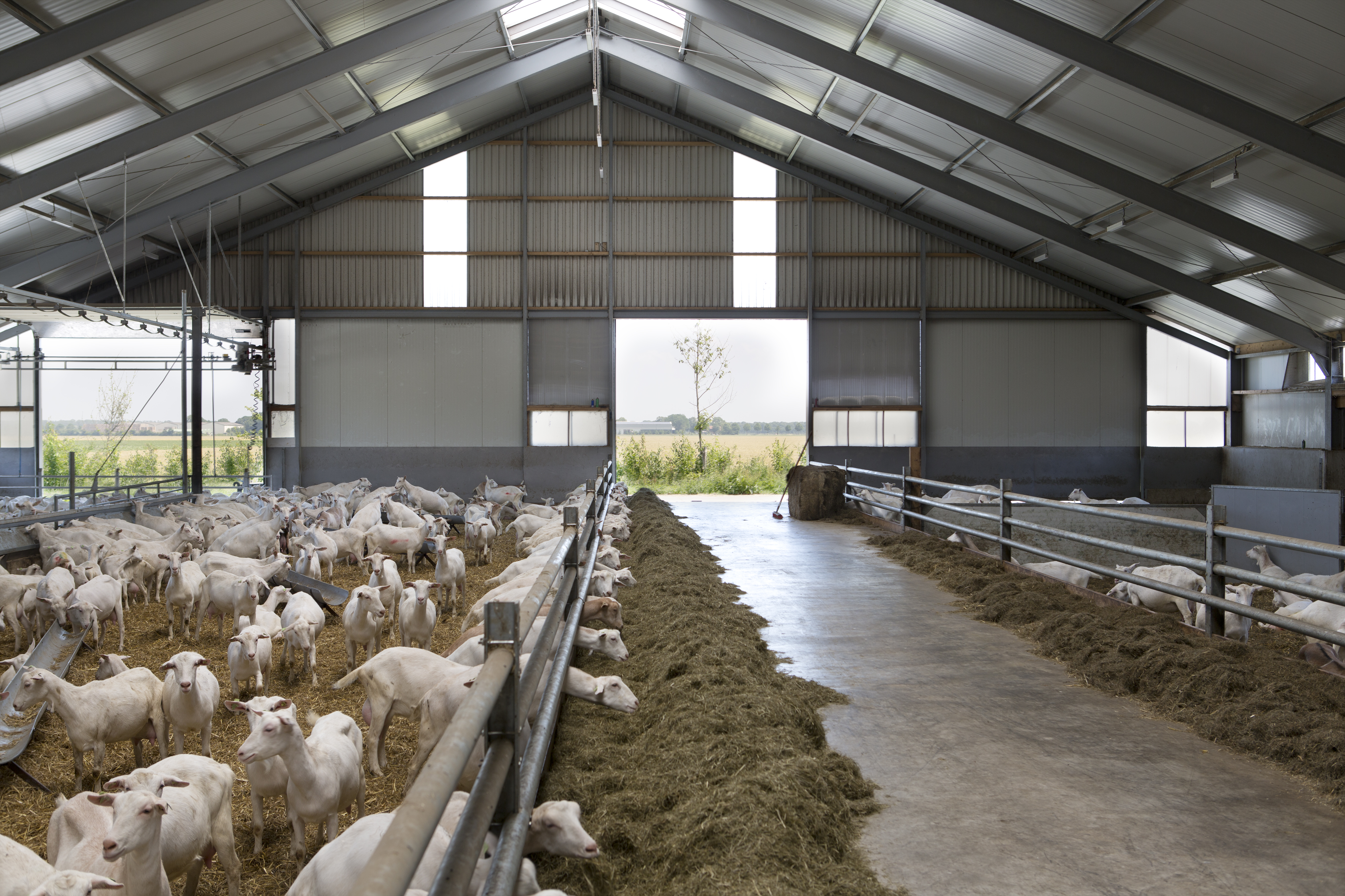 Om de vergunningverlening voor de geitenstal zo soepel mogelijk te laten verlopen, bleef Rombou bewust dicht bij de verleende vergunning voor de koeienstal. Hierdoor hoefden de ondernemers niet nogmaals langs de welstandscommissie. ‘De binnenkant van de stal, die voldoet aan de Maatlat Duurzame Veehouderij, kwam er uiteraard anders uit te zien dan aanvankelijk de bedoeling was. In plaats van een ligboxenstal voor tweehonderd koeien zijn er nu vier potten voor in totaal 1.100 geiten en een 2 x 36 stands melkstal met beweegbare vloer’, aldus Altena.